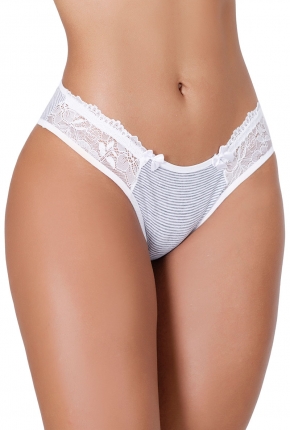 Lindo modelo de Tanga produzido no algodão listrado dando um toque de modernidade na peça que compõe uma renda delicada na lateral. O viés nas pernas trás um conforto no modelo que do básico mais confortável pro dia a dia.
