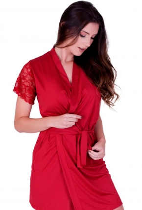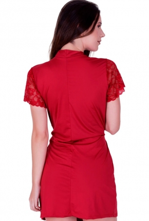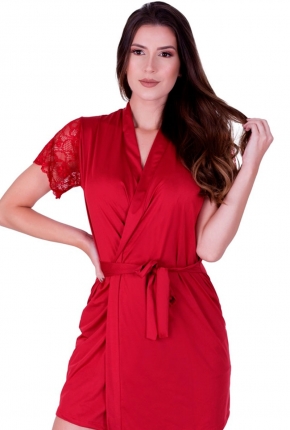 A manga curta toda em renda deixa o robe ainda mais lindo e elegante, possui o fechamento através de uma fita também em microfibra.